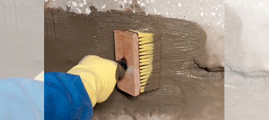 Это может быть гидроизол или кристализол. Эти составы нужно наносить на поверхность, которую предварительно увлажнили. После этого состав проникает в мельчайшие трещины и поры поверхности, таким образом заполняя их полностью. В дальнейшем под действием влаги активные вещества проникающих составов продолжают действовать тем же образом и, благодаря этому, предотвращается появление новых трещин и проникновение в них воды. Наносить подобные составы нужно в несколько слоев.