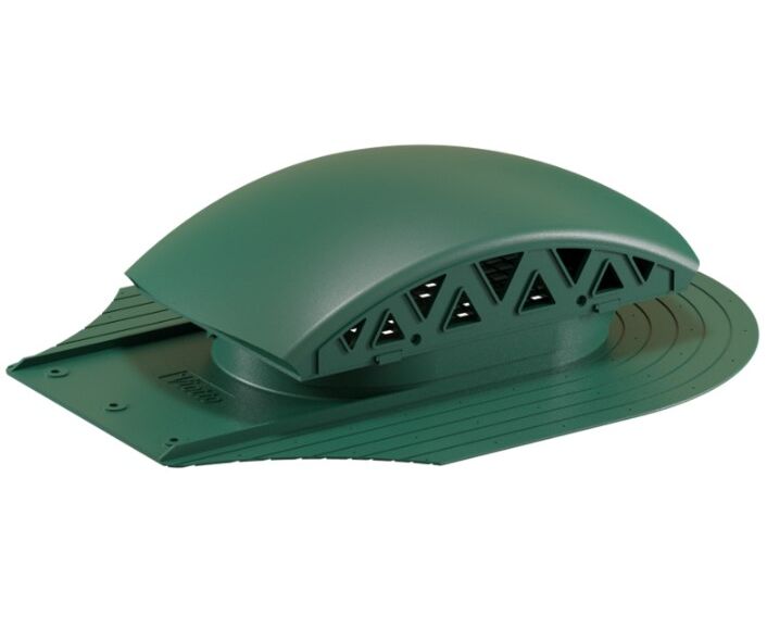 Аэратор устанавливается на двускатной крыше и совместим с гибкой черепицей.