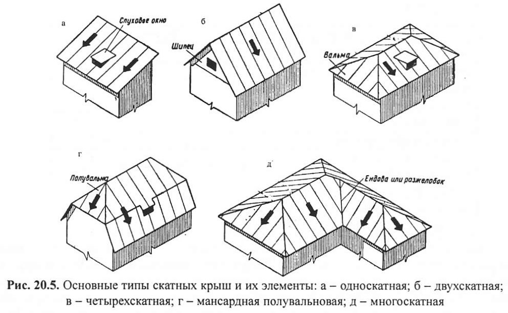 Отдельные объекты могут включать в себя несколько типов крыш.