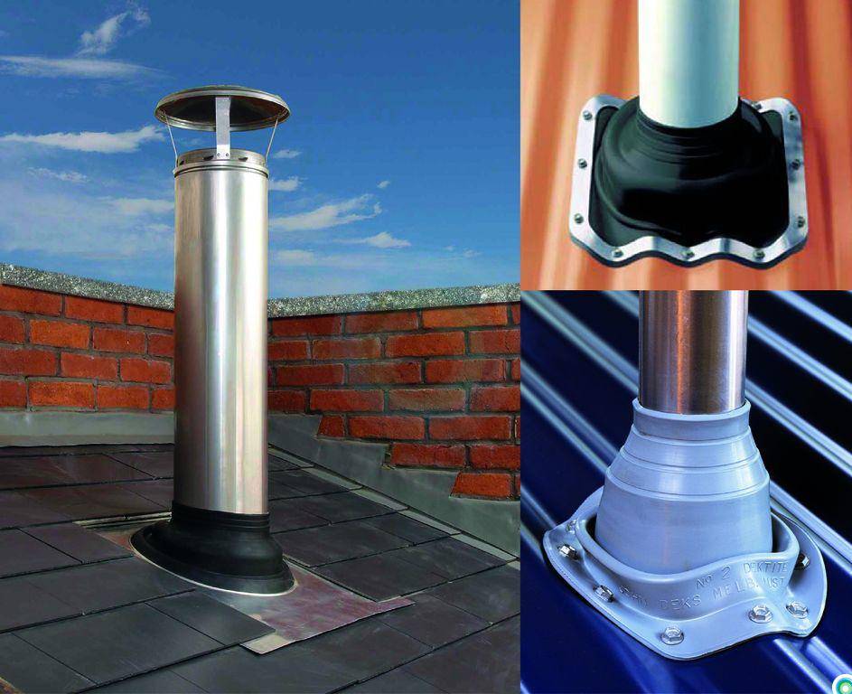 - Кровельные проходки и патрубки для дымоходов с круглым сечением