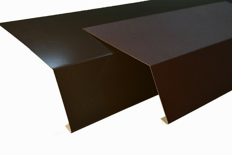 - Фронтонный. У добора три загиба: фартук, юбка, ступень. Монтируется на фронтонных концах крыши. Уберегает от осадков свес фронтона. Капельник устанавливается на подкладочный ковер.