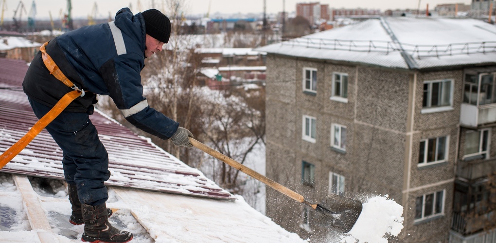 Несмотря на то что подобные стропильные системы встречаются крайне редко, очистка снега на ровной кровле – очень востребованная услуга среди альпинистов. Это обусловлено тем, что данный тип крыш, чаще всего используется на малоэтажных и высотных зданиях, где без специальных навыков и наличия страховочного инвентаря обойтись невозможно. Для очистки ровной плоскости используется самый обычный инструмент – лёгкая широкая лопата или скребок. Если основа – железобетонная плита, можно воспользоваться лёгкой снегоуборочной техникой со шнековым механизмом.