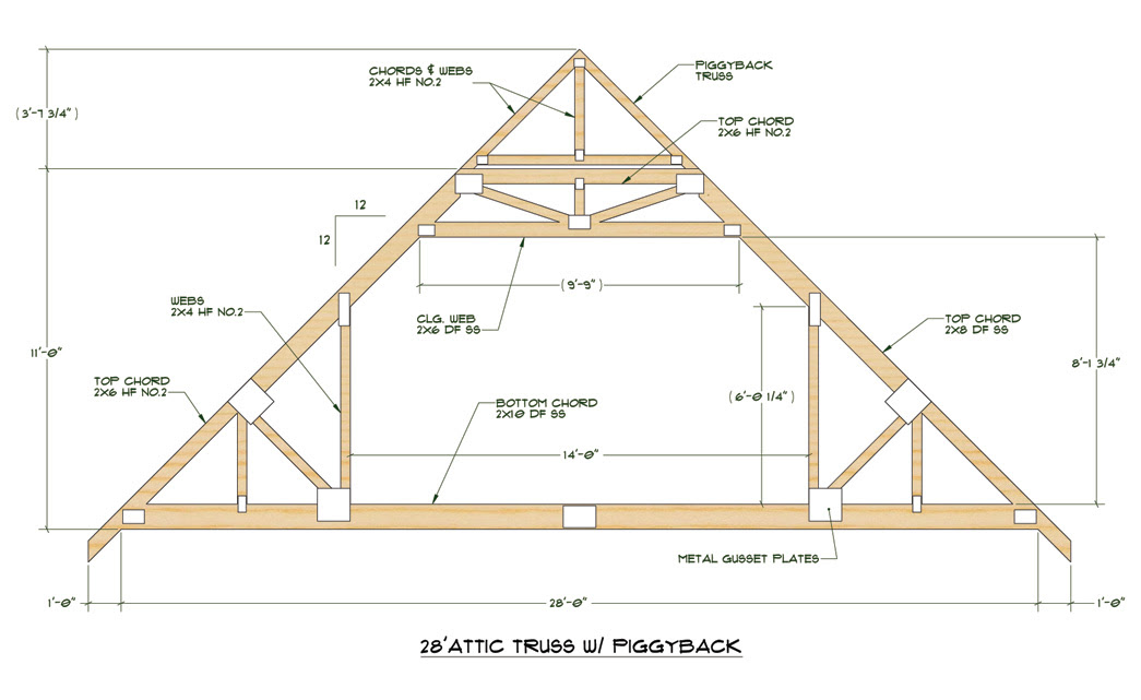 Для этого также лучше использовать шаблон. Далее, стропила соединяются с затяжкой. После этого вся ферма устанавливается на свое место и крепится к мауэрлату;