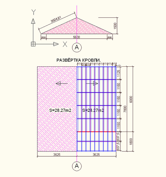 Используются соединения прогонов, фиксируются скаты, а длина верхних и нижних стропил