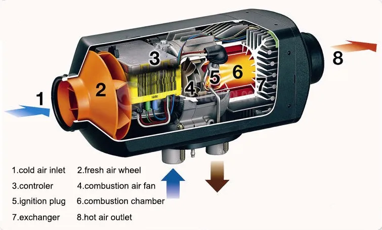 - Вентилятор, обеспечивающий движение воздуха.