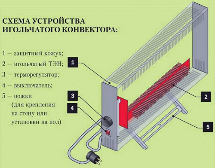 - прибор может иметь схему с естественной конвекцией за счет стремления теплого воздуха вверх или систему принудительного нагнетания воздуха вентилятором.