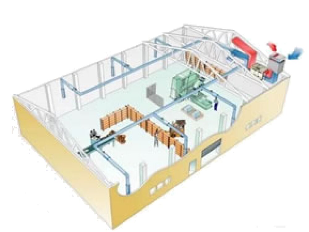 Для создания комфортной и эффективной производственной среды обычно необходимо компенсировать потоки отработанного воздуха с помощью устройств обработки подпиточного воздуха. Устройства оборота воздуха обеспечивают более равномерное распределение тепла в помещениях с высокими потолками и повышают общую эффективность обогрева.Специальные устройства, такие как тепловентиляторы, воздушные ножи с подогревом и газовые инфракрасные обогреватели, повышают уровень комфорта в зонах с высокими потерями тепла.