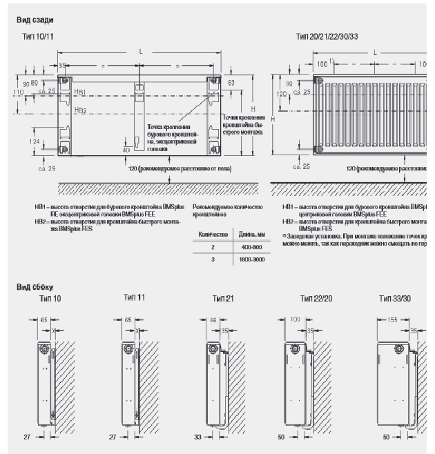 Ширина батареи варьируется в диапазоне от двадцати сантиметров до полутора метров.
