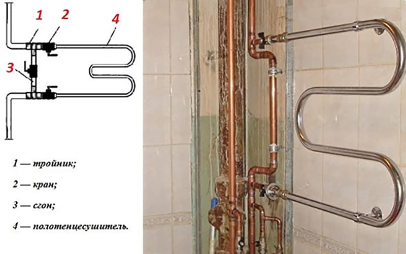 Если с электрическими полотенцесушителями все достаточно просто (при отсутствии обнаружения внешних повреждений электропроводки нагреватель необходимо сдать в ремонт или заменить), то полотенцесушители с жидким теплоносителем имеют несколько способов решения проблемы тепла в помещении: