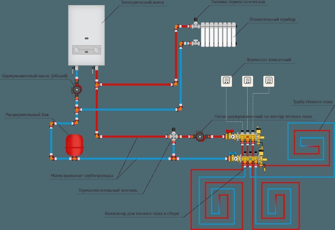 Схема отопления с теплым полом и радиаторами в частном доме: выбор и монтаж