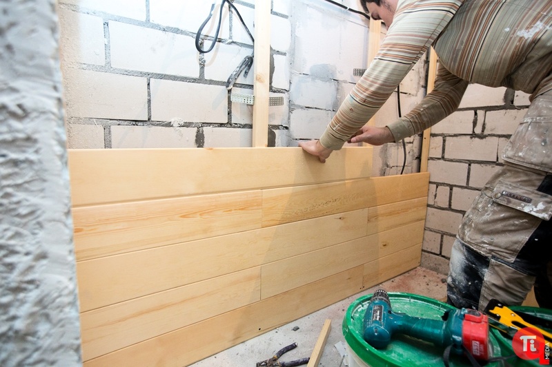 - Монтаж деревянной обрешетки, с использованием деревянных брусков