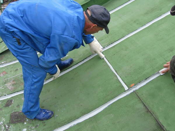 - ремонт кровли своими руками, как отремонтировать и залить по стыку плит бетонное покрытие, а так же как устранить течь, сделать изоляцию, починить протекание в металлическом гараже