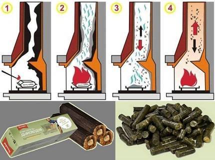 В продаже есть специальные брикеты с химическими веществами, которые при горении разрушают копоть. Их просто разжигают в печке и через 1–2 дня грязь сама обвалиться в топку. Оттуда ее вычистить не составит большого труда. Но использовать подобные средства в бани не рекомендуется, так как химия попадает в помещения и может негативно сказаться на здоровье парильщиков.