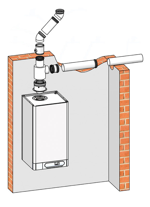 Водонагреватель с прямой вентиляцией использует герметичную камеру сгорания, которая обеспечивает безопасный перенос продуктов сгорания через горизонтальную трубу и внешнюю стену. Вторая труба, также герметичная, используется для всасывания свежего воздуха.