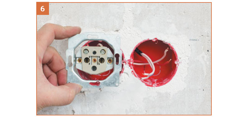 Осуществляют установку, выставляют подрозетник строго в плоскости стены, чтобы он и не выпирал, и не впадал слишком уж глубоко, края подрозетника должны находиться на одинаковом расстоянии от краев посадочного отверстия. Остатками раствора алебастра маскируют провод, идущий к подрозетнику.