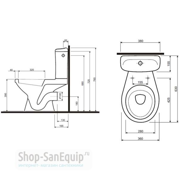 | Унитаз с цельноотлитой полочкой | 605 | 340 | 320-370 |