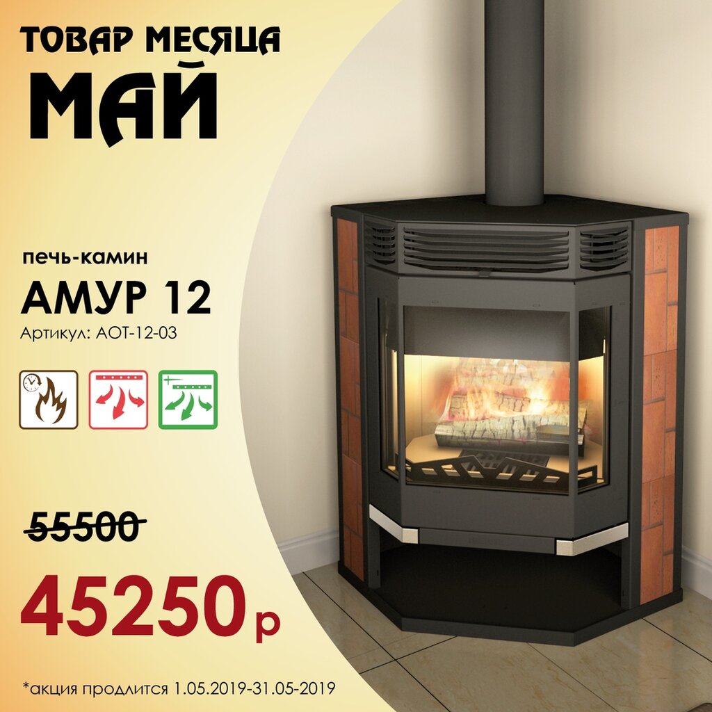 Диаметр дымоходной трубы составляет 11,5 сантиметра, зато длина загружаемых поленьев достигает 45 сантиметров.