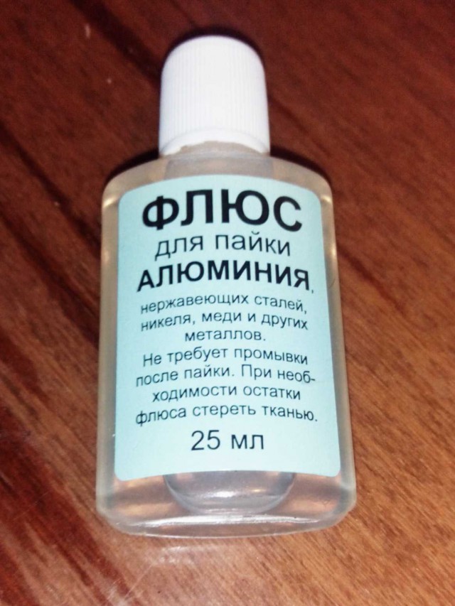 Такой материал требует специального флюса. Однако использовать можно и универсальный, который подходит для пайки оцинкованного железа, алюминия, меди, коррозийно-стойких сплавов, бронзы.