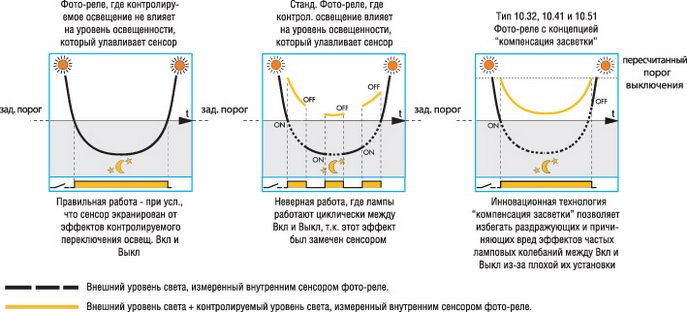 - Пороговый уровень освещенности. Для настройки надо установить максимальную чувствительность фотореле и вечером дождаться уровня освещенности, при котором желательно включение освещения. Утром можно проконтролировать, при какой освещенности лампы выключатся.