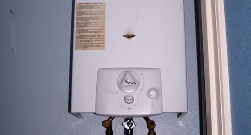 Наиболее популярные среди водонагревателей. Принцип работы газовой колонки заключается в нагреве проточной холодной воды в медном теплообменнике, подогреваемым природным газом. Встречаются приборы, работающие как в автоматическом (включается с краном смесителя), так и полуавтоматическом режимах (ручной розжиг фитиля).