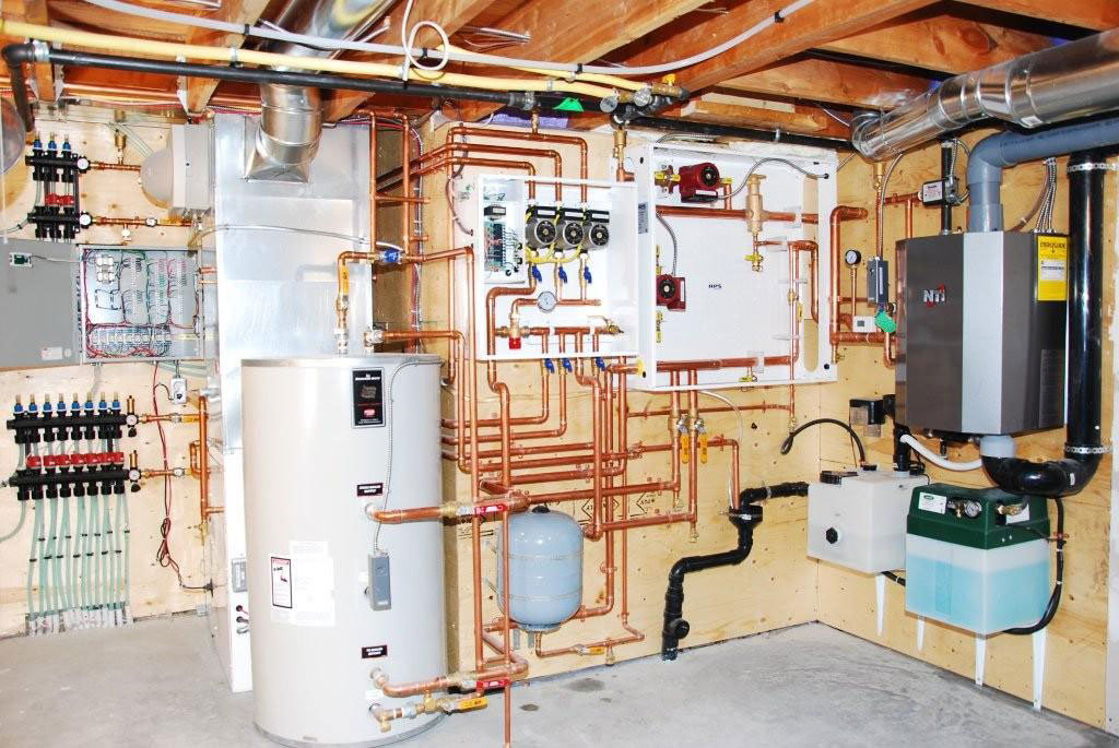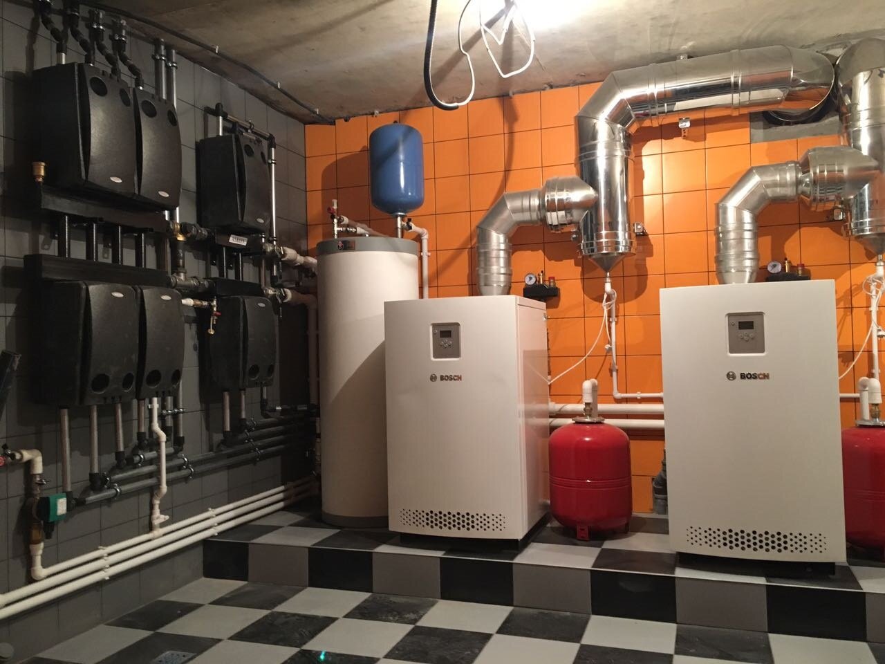 - Установка настенного газового котла в цокольном этаже коттеджа