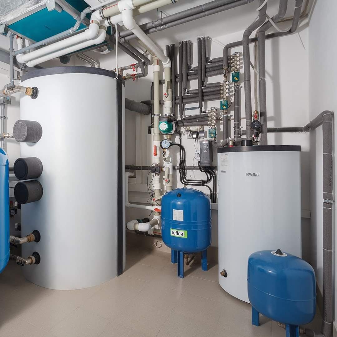 - Один или несколько водогрейных котлов разной мощности объединенных в одну сеть. Максимальная производительность может достигать нескольких мВт.
