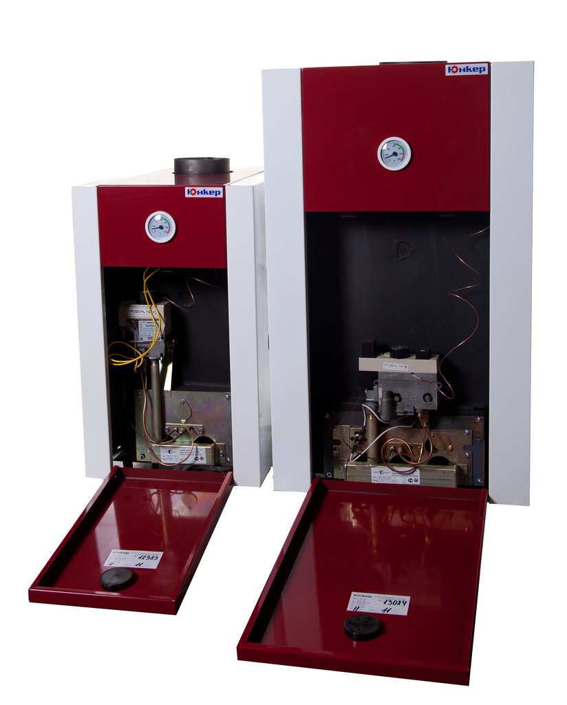 Стальные и чугунные теплообменники чаще всего устанавливаются в напольных котлах. Они более долговечны. Горелки бывают атмосферные и дутьевые. При выборе модели следует обратить внимание на количество ступеней горелки — от этого зависит возможность регулировки мощности котла. Модулированные горелки позволяют регулировать мощность котла точно и плавно.