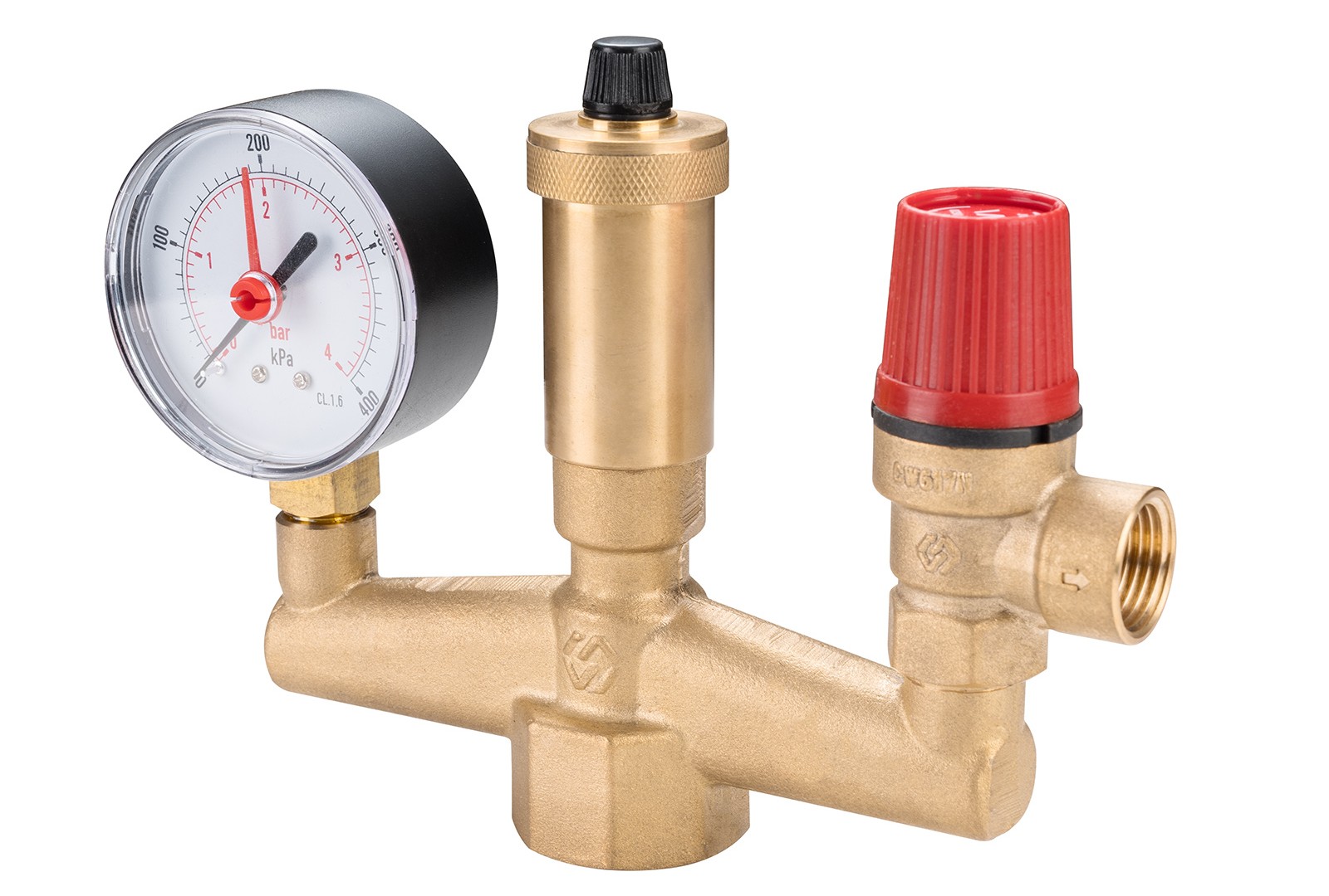 Группа безопасности котла — это несколько защитных элементов, смонтированных вместе на едином корпусе и предназначенных для предохранения системы отопления от превышения максимально разрешенного рабочего давления.