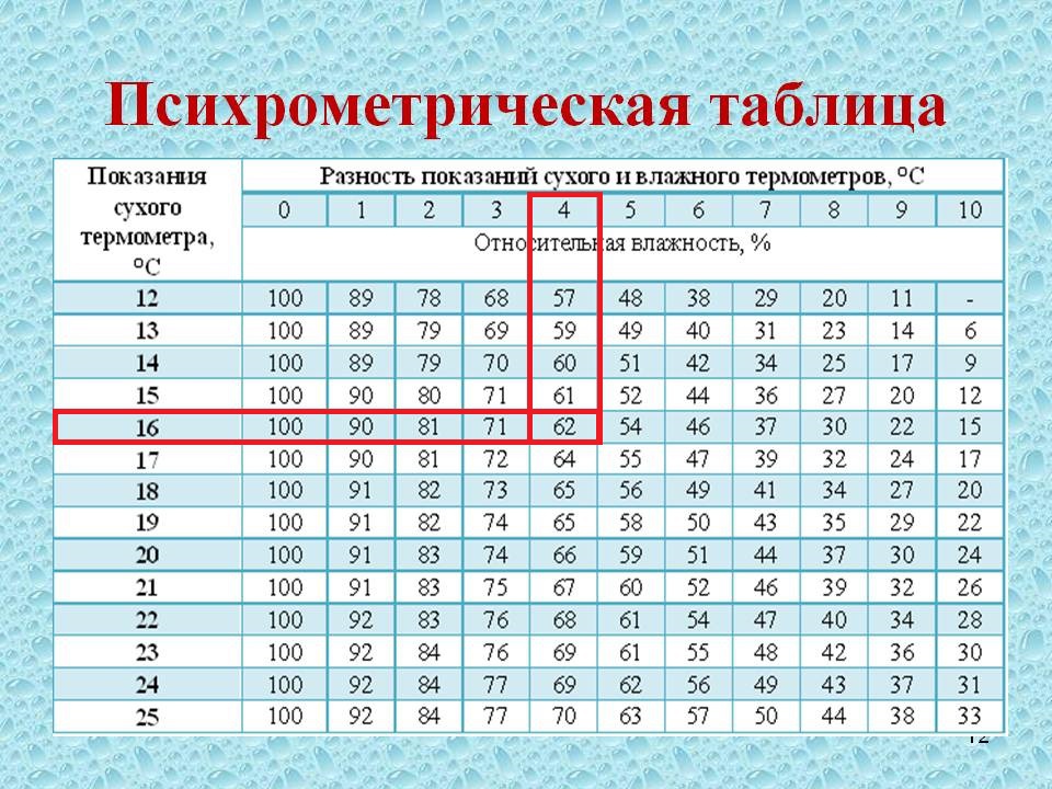 Например, при 68°F воздух может удерживать до 0,00107 фунтов воды на кубический фут (100% насыщение). В комнате 12×12 с потолком 8 футов у вас есть 1152 фута 3 воздуха. При 100% относительной влажности общее количество воды в воздухе составляет 1,23 фунта или 0,33 галлона воды .