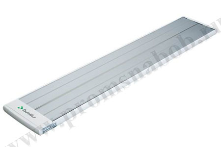 Первый тип, о котором будет идти речь в статье — электрический инфракрасный обогреватель с закрытым ТЭНом(Neoclima IR-2). Предназначены они для установки внутри помещений при высоте потолков до 3 метров. Мощный нагревательный элемент закрывает металлическая пластина из анодированного алюминия, благодаря этому достигается более мягкое тепловое излучение, распространяющееся вниз и в стороны. Инфракрасные обогреватели с закрытым ТЭНом отлично зарекомендовали себя при установке в жилых и производственных помещениях благодаря следующим преимуществам: