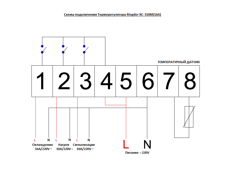 Обозначьте любую метку проводов R, RH или RC. Обычно у вас будет один или два из этих трех. Если у вас есть только один провод, независимо от того, помечен ли он RC, он войдет в клемму R, а перемычка соединительные клеммы R и RC будут на месте. Некоторые термостаты имеют перемычку, некоторые иметь металлическую скобу, у других может быть вилка, а перемычка также может быть просто проводом, соединяющим два терминала. Если у вас два провода, R или RH войдут в клемму R, а RC — в контакт. в разъем RC.Если у вас более одного провода (у вас есть провод с меткой R, а другой — провод, обозначенный, например, Rc), вы можете удалить любые перемычки между клеммами R и Rc, или нажмите переключатель, чтобы открыть RC-терминал и вставить провод.
