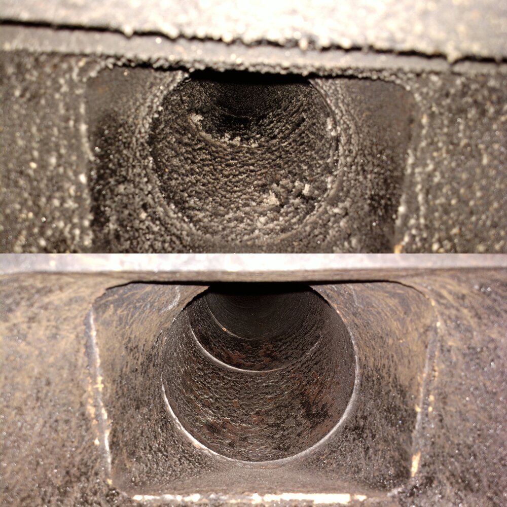 Очистите видимые области, до которых вы можете добраться, с помощью маленькой щетки для чистки дымохода.