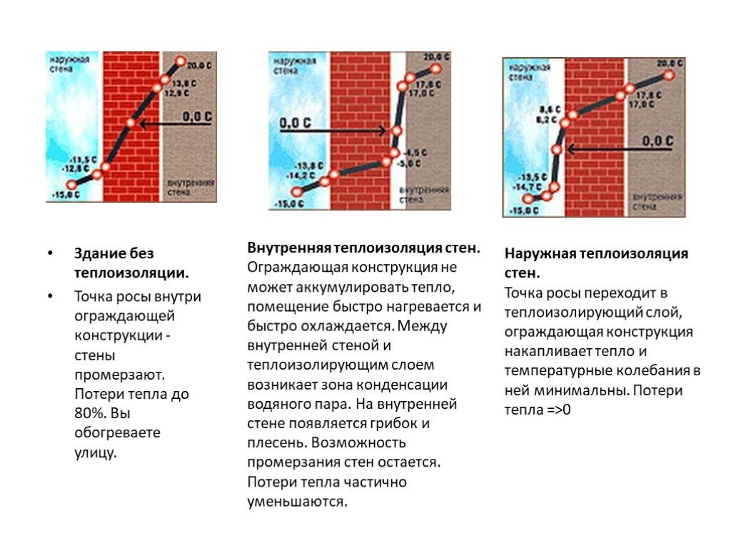 - При утеплении тонким слоем пенополистирола (50 мм) происходит влагонакопление в стене в отопительный период.