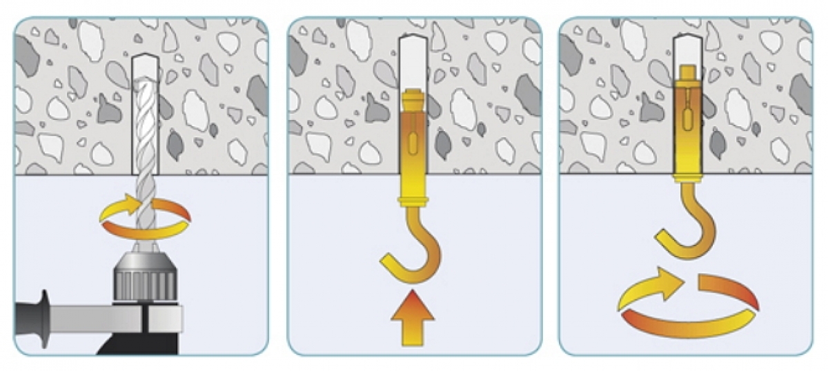 Современный вариант, позволяющий прикрепить легкие и средней тяжести светильники и люстры к любым типам оснований: бетон, камень, древесина, металл и пр.