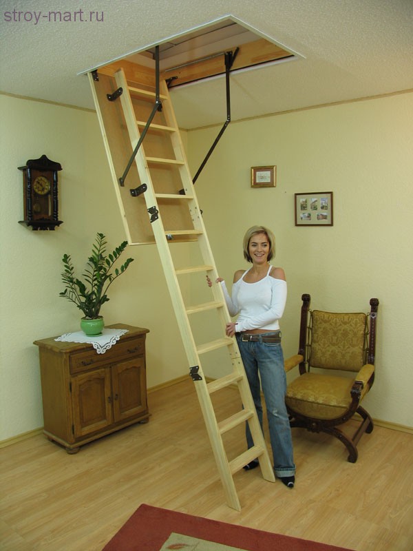 Чердачная лестница представляет собой складную лестницу, которая устанавливается внутри проема на чердак. Когда вы открываете люк на чердаке, вы можете сложить лестницу для легкого доступа.