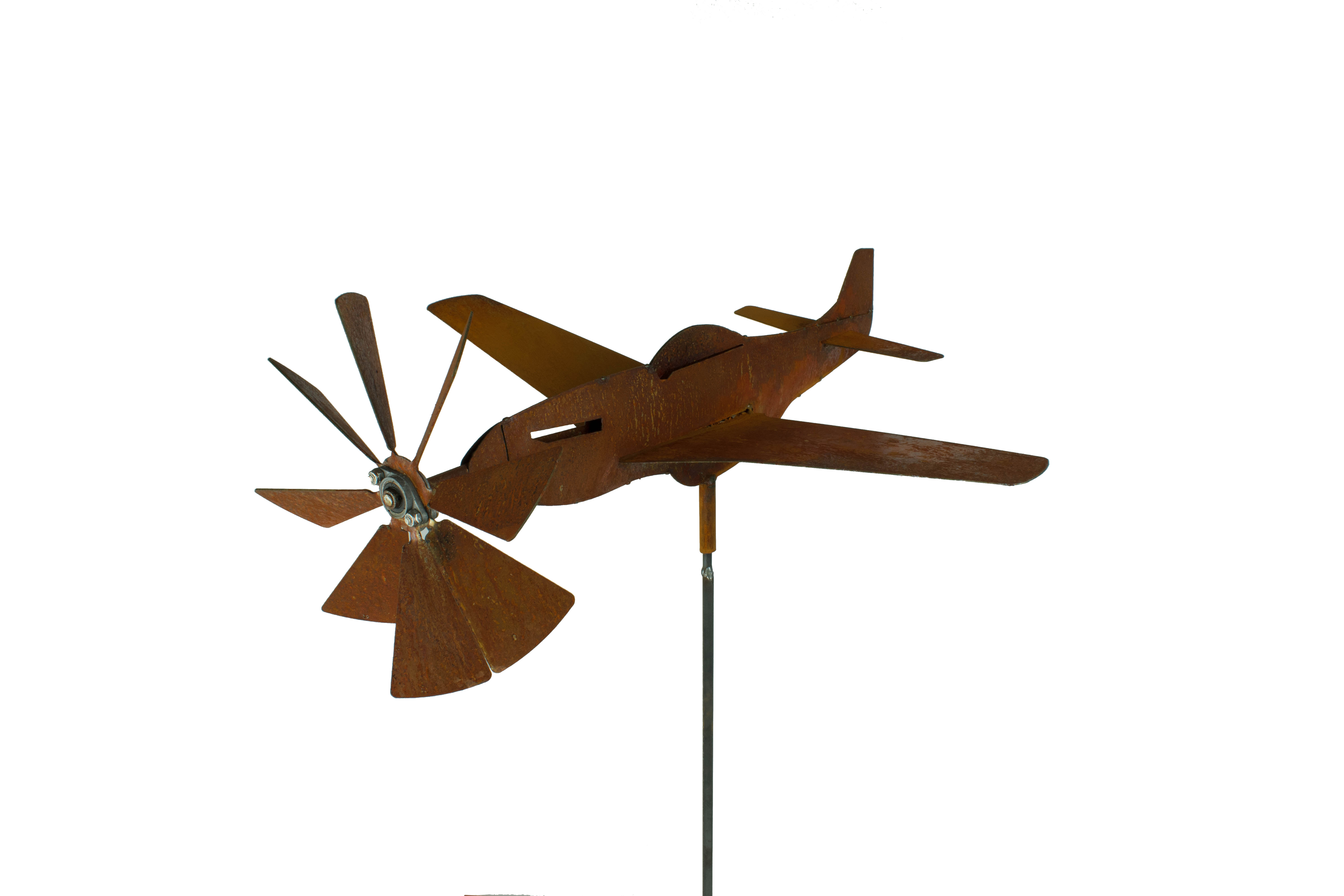 Флюгер самолет – конструкция динамичная, поэтому ее на высоких домах не ставят. Просто не будет видно, как крутиться пропеллер. А именно он и является той самой изюминкой. Сложность данной конструкции заключается в том, что крутящаяся часть должна каким-то образом свободно крепится к фигурке самолета.