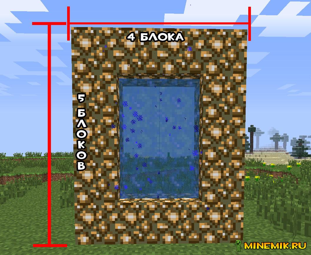 Вы должны построить рамку с блоками обсидиана высотой 5 блоков и шириной 4, оставляя пустой центр.