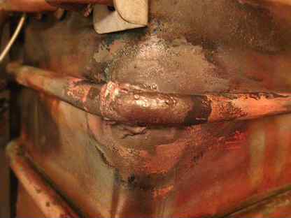 - паяльником и газовой горелкой, пайка теплообменника, радиатора