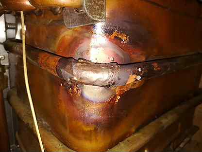 Обычно, пробоины и свищи появляются в трубах, которые проходят с внешней стороны теплообменника. Именно эти места в трубах, обычно, делаются из низкокачественного материала.