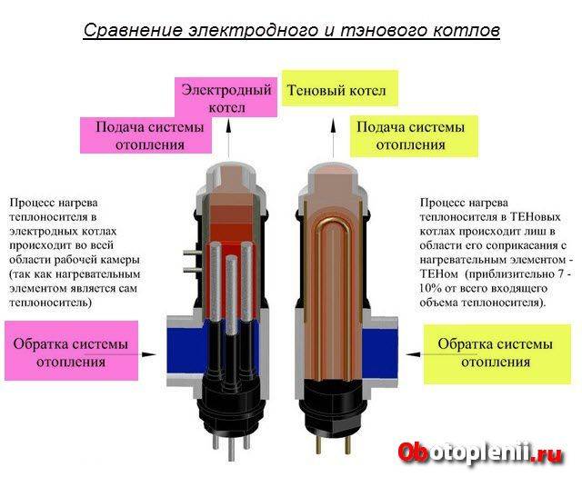 В электродном котле нет нагревательного элемента, и все происходит прямым нагревом жидкости без посредника, температура электрода не выше температуры жидкости в котле.