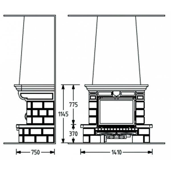Для того, чтобы камин не дымил, высота и сечение дымовой трубы должны соответствовать ширине, высоте и глубине топливного отделения. Высота топливника составляет 0,6 – 0,9 относительно его ширины, а глубина — 0,5 – 0,7 относительно его высоты. Для лучшей тяги и большей теплоотдачи заднюю стенку в топливнике с высоты в 1/3 наклоняют вовнутрь под углом 20°. Вверху топливник сужается, образовывая горловину, благодаря чему тяга усиливается.