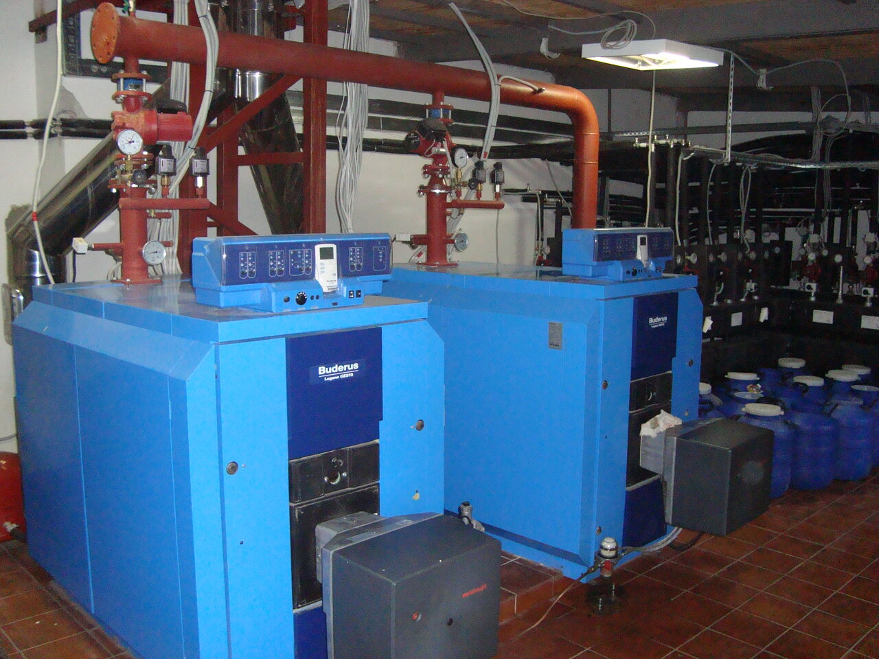 Оборудование такой котельной чаще всего монтируется в существующем или вновь построенном капитальном здании, поставляется в виде отдельных элементов (котлы, горелки, насосы, теплообменники и т.д.) и сборочных узлов (коллекторы с арматурой, насосная обвязка, комплект обвязки ХВП и т.п.), заранее изготовленных и собранных на промышленной базе компании (крупно-узловая сборка) и монтируется на фундамент (пол) здания.