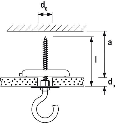 Нижняя поверхность крюка должна располагаться на 3-4 мм выше поверхности потолка.