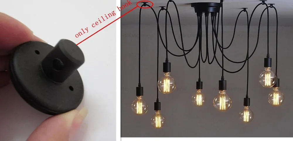 - Снимите люстру с монтажного крюка. Если в дальнейшем этот способ подвешивания вам не понадобится, крюк можно удалить – выкрутить, загнуть или срезать. Рис. 4: снимите люстру с крюка