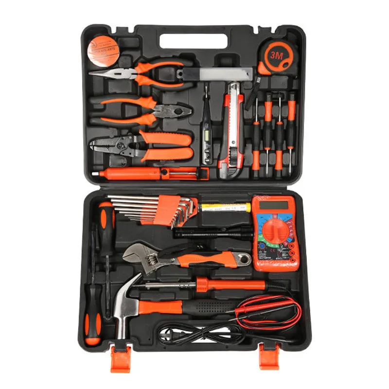 - Паяльник. Без него можно обойтись при устройстве проводки, но он необходим при ремонте бытовой техники. Паяльник входит в паяльный набор вместе с заготовками из олова и канифолью.