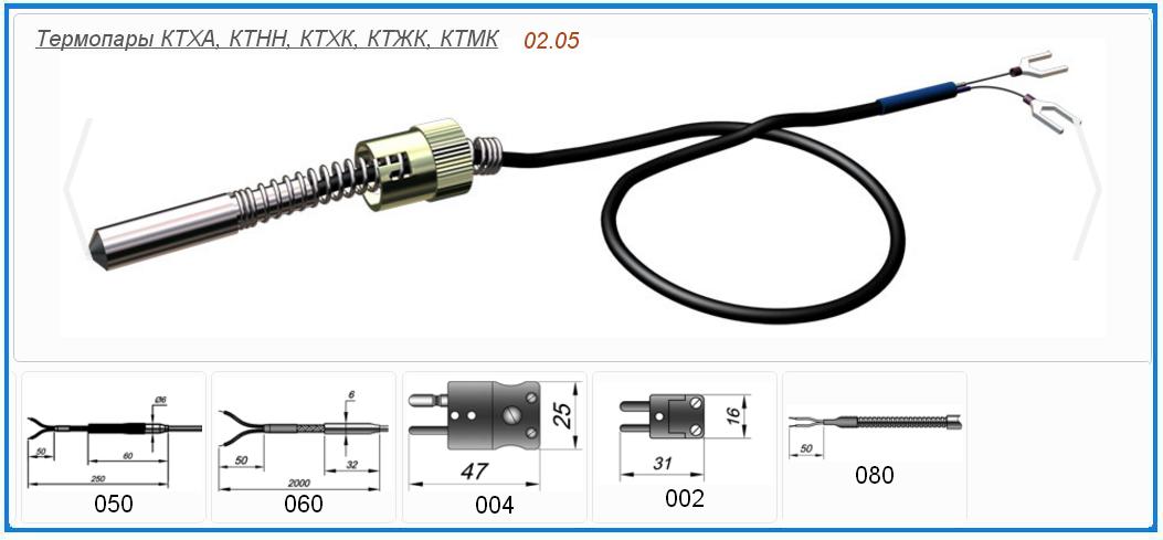 - Тип К: Хромель и алюмель. Диапазон температур (длительно): от 0°С до +1100°С;
