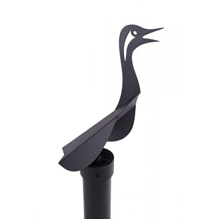 - При изменении направления ветра флюгер проворачивается и тянет за собой шторку, прикрывающую дымоход от ветра.