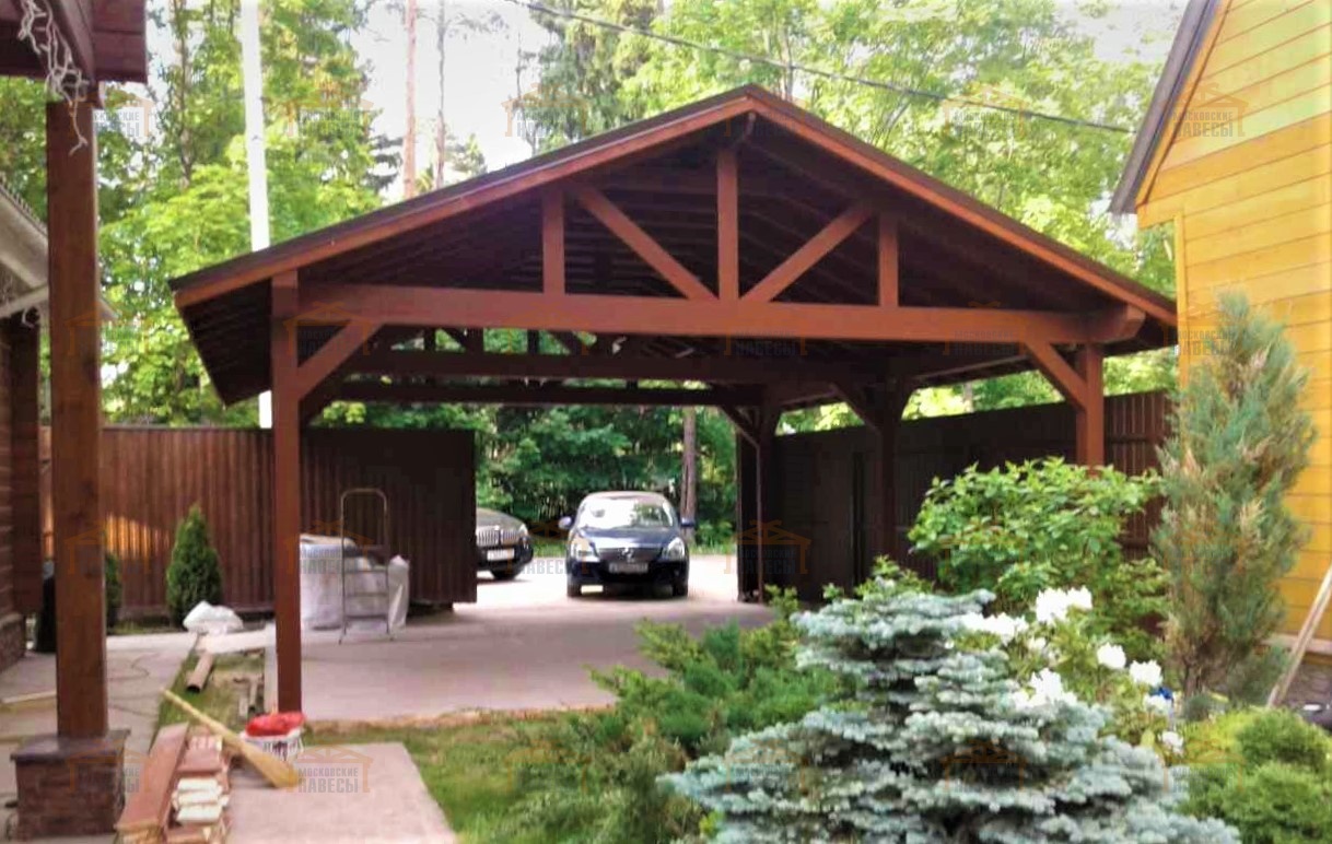 Укрытие из дерева для машины может очень быстро строиться, является довольно долговечным и практичным, способным служить более десяти лет, с условием обработки его защитными растворами. Каркас из дерева для машины может быть накрыт: