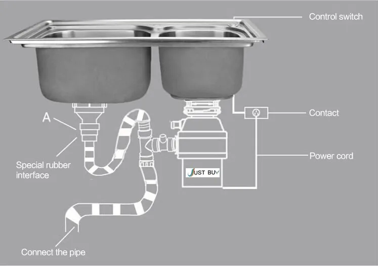 Для подключения измельчителя пищевых отходов без пневмокнопки существуют два проверенных способа: 1) Установка настенного 20-ти амперного биполярного выключателя, с расстоянием между полюсами не меньше 3мм и обязательным заземлением. Важно упомянуть, что измельчитель необходимо замкнуть напрямую перед включением по данной схеме, а именно: — включить измельчитель в розетку; — нажать пневмокнопку один раз, чтобы измельчитель включился и работал (замкнулся напрямую). — работающий измельчитель отключить от розетки (теперь он замкнут напрямую) и позже подключить к уже установленной розетке и настенному выключателю. Теперь при использов