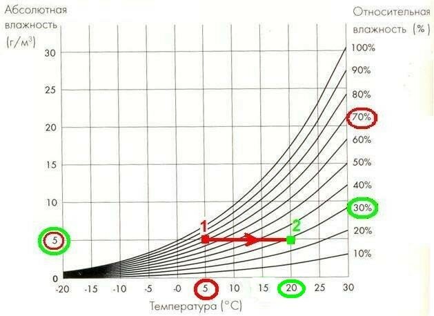 Идеальные уровни влажности в помещении в зависимости от температуры наружного воздуха